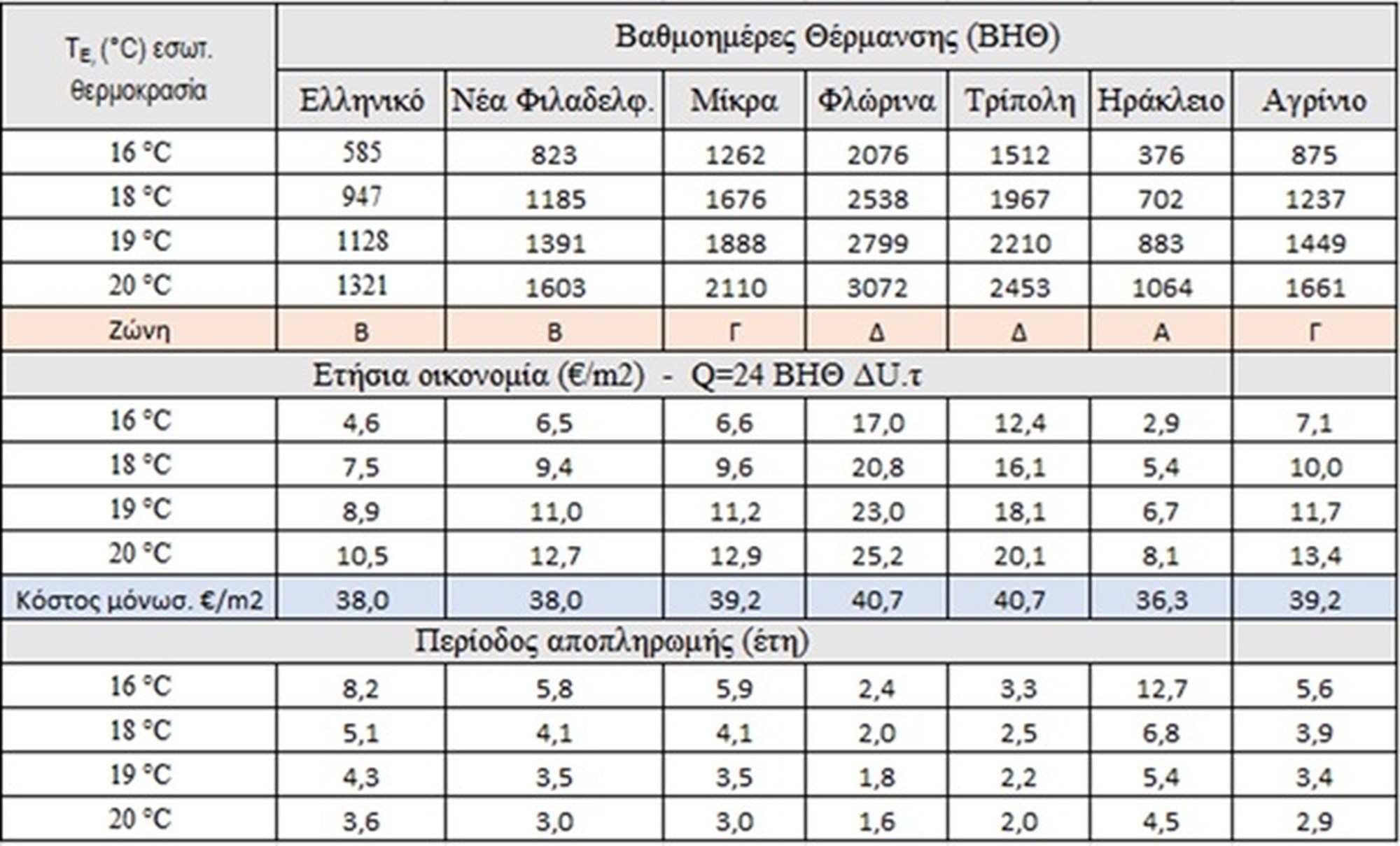 Παρατηρείται ότι οι θερμομονώσεις είναι ιδαιτέρως αποδοτικές στη ζώνη Δ με αποσβέσεις από 1,6 έως 2 έτη ενώ στο Ηράκλειο φθάνει στα 4,5 έτη.
